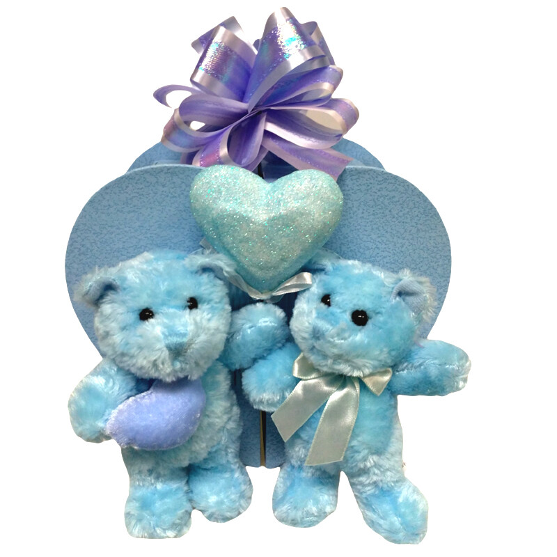 Vahvaa pahvia oleva rasia pitää sisällään kaksi pehmonallea, joiden korkeus on noin 15 cm. Toisella nallella rusetti kaulassaan ja toisella sydän sylissä. Rasian ollessa suljettuna se muodostaa sydämen. Pakkaus sisältää lahjaruusukkeen ja tikun, jonka päässä on sydän. Valmis lahja!