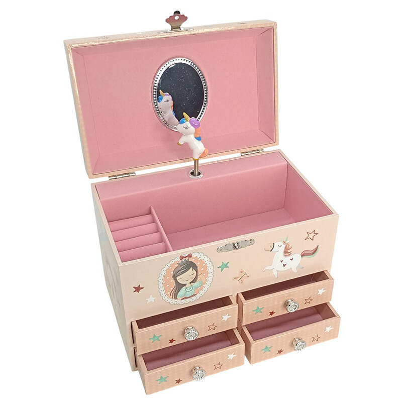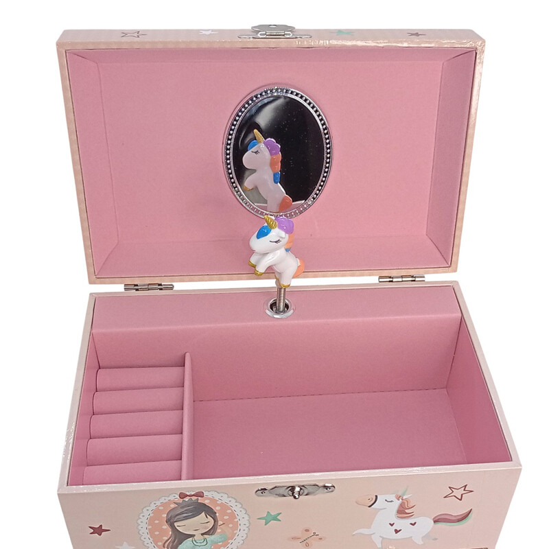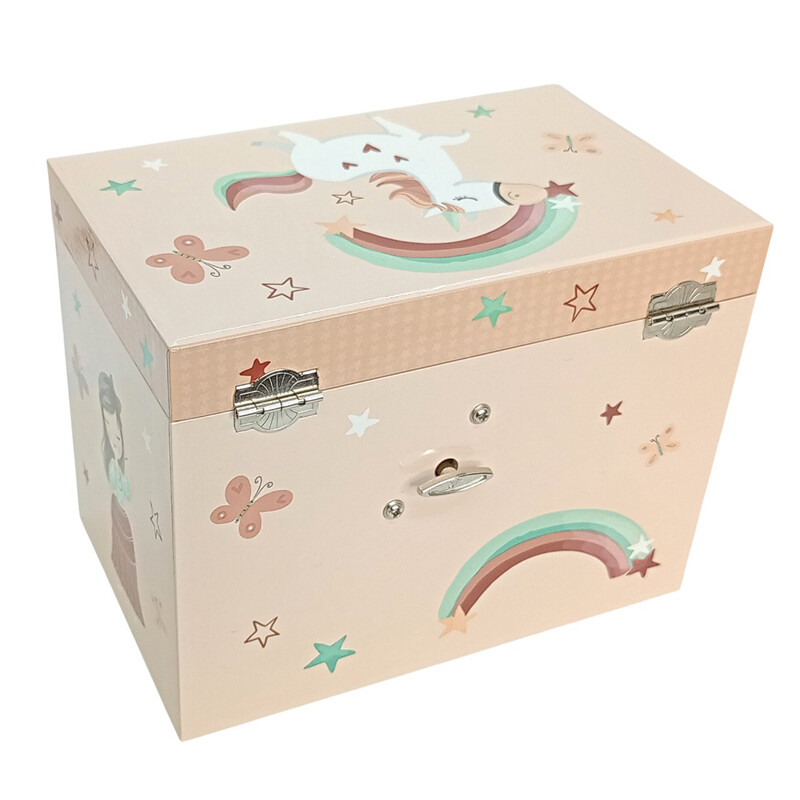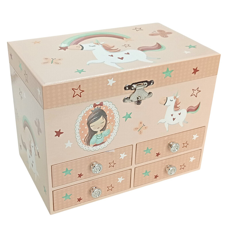 Korulipasto, joka on myös soittorasia. Lipaston kuvituksena yksisarvinen. Rasian sisällä on säilytyslokero ja tyynylovikot sormuksia varten. Etupuolella on neljä pientä vetolaatikkoa. Korurasian sisäpuolella pyörii yksisarvinen peilin edessä musiikin soidessa.