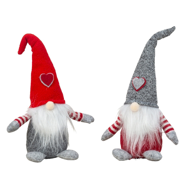 Huopa-/neuletonttu. Pitkäparta. Lakissa sydänkuvio. Myyntierässä on kahta eri väriä.