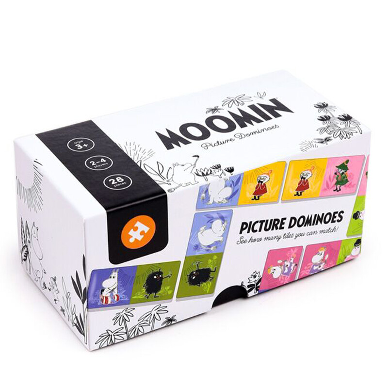 Muumi -Domino Koodi: GAME15 Kuvaus Muumiaiheinen Domino-peli. 28 palaa Palat tukevaa pahvia Tukeva säilytyskotelo