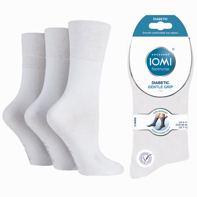 Erityisesti diabeetikoille tehty, ei puristava, joustoneuleinen sukka. Nipussa on kolme paria valkoisia sukkia. Hinta on koko nipun hinta.