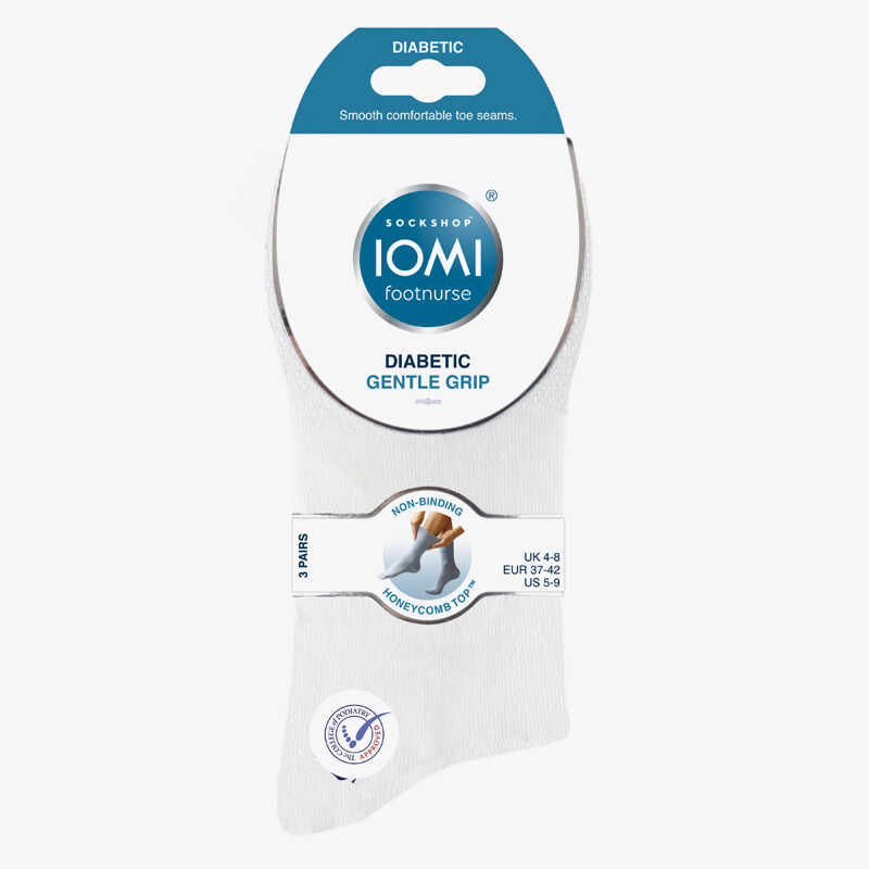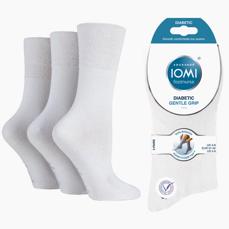 Erityisesti diabeetikoille tehty, ei puristava, joustoneuleinen sukka. Nipussa on kolme paria valkoisia sukkia. Hinta on koko nipun hinta.