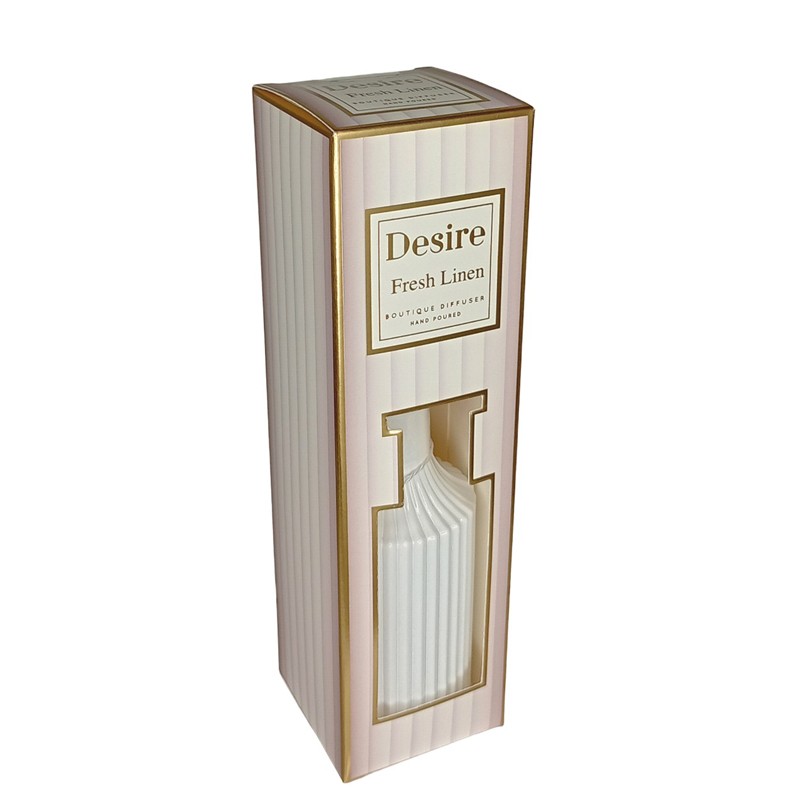 Desire-huonetuoksu Fresh Linen 150 ml Code: LP49928 Description Desire -sarjan suosituin tuoksu, Fresh Linen. Tuoksun voimakkuutta voi säätää tikkujen määrällä.Tuoksu: Fresh LinenTilavuus 150 mlTuoksutikkuja 6 kpl Tikkujen pituus noin 22 cm Tyylikäs pakkaus