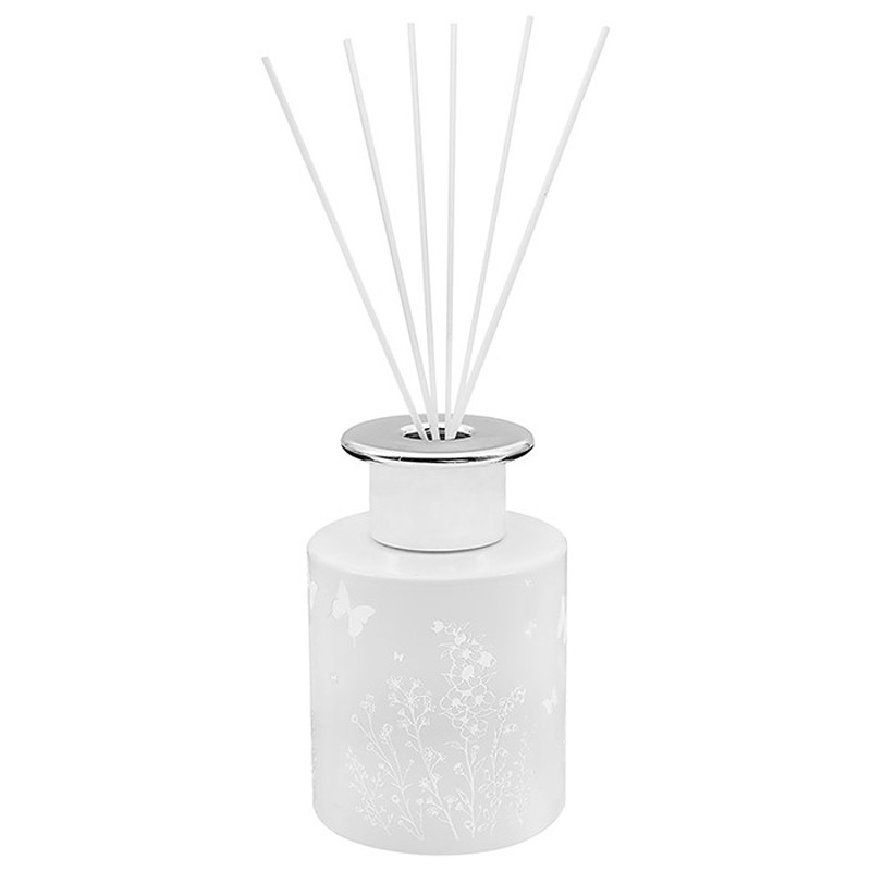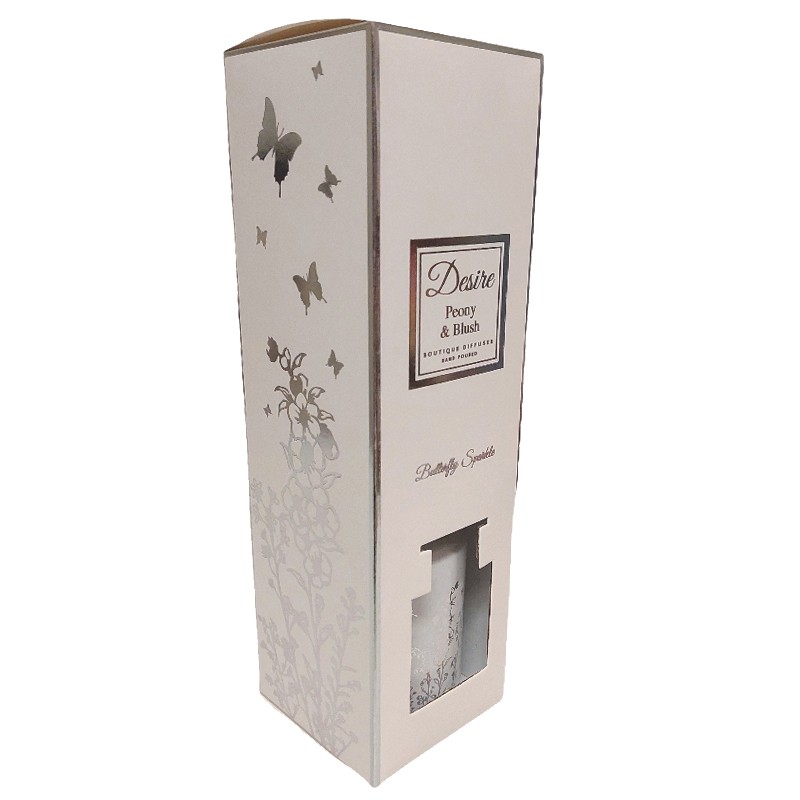 Desire-huonetuoksu Perhonen 120 ml Code: LP48594 Description Desire -sarjan perhosaiheinen huonetuoksu. Tuoksun voimakkuutta voi säätää tikkujen määrällä. Kaunis perhoskuvioinen lasipullo.Tuoksu: Pioni (Peony)Tilavuus 120 mlTuoksutikkuja 6 kpl Tikkujen pituus noin 22 cm Tyylikäs pakkaus
