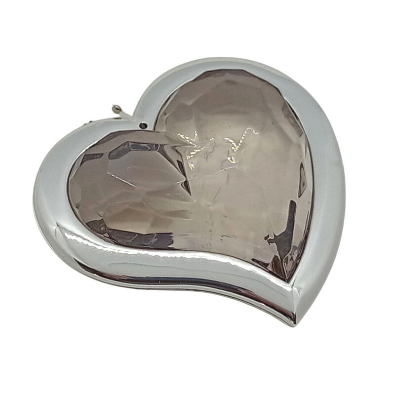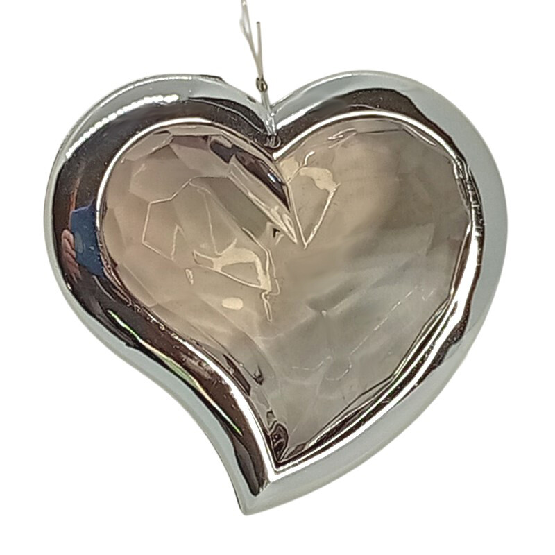 Kaunis savunharmaa akryylisydän, jonka keskiosa on savunharmaata kirkasta akryyliä ja reunus on hopeamaalattu. Tuotteessa on valmiina ripustusnauha. Sydämistä saa kauniin asetelman ikkunaan, kun ripustaa ne erimittaisilla ohuilla nauhoilla.