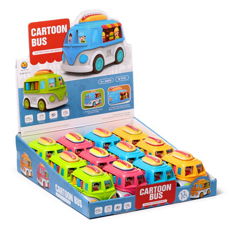 Neljä erilaista kioskipakua. Autoissa on pull-back -toiminto. Vauhtipyörän avulla autot kulkevat itsekseen. Auton liikkuessa, auton katolla oleva Hot Dog liikkuu. Autot tulevat myyntitelineessä.