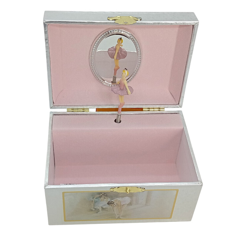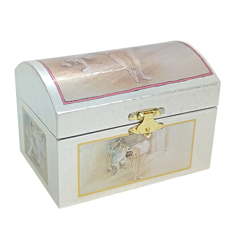 Korurasia, joka on myös soittorasia. Rasian kansi on puolipyöreä, arkkumallinen. Kauniissa kansikuvassa kaksi ballerinaa. Rasian sisällä on säilytyslokero. Korurasian sisäpuolella pyörii balleriina peilin edessä musiikin soidessa.