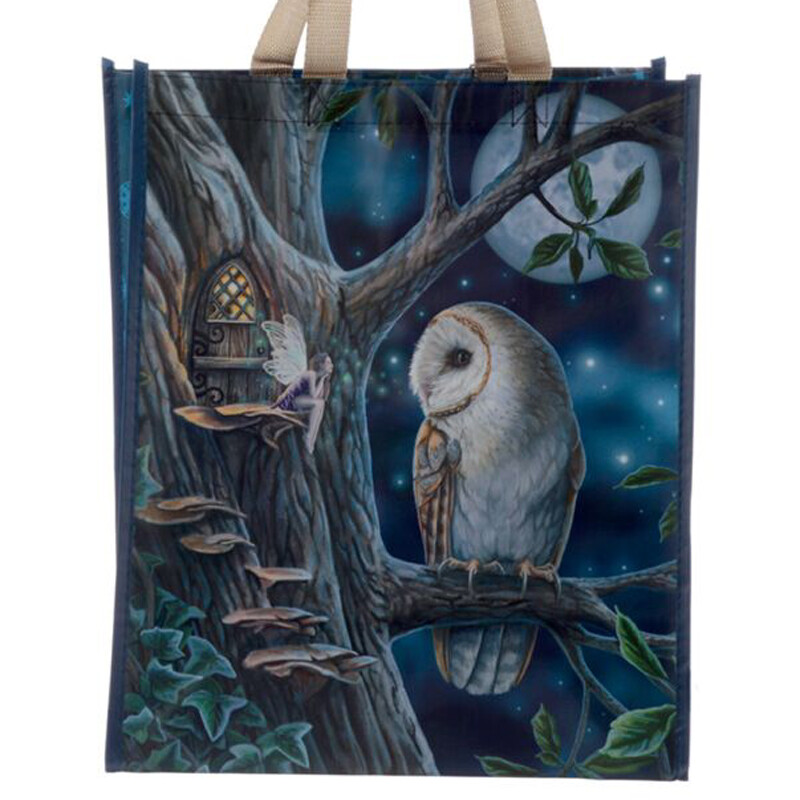 Kestävä kassi, jonka kuvassa on mystinen pöllö. Materiaali on kestävää ja sitä voi puhdistaa kostealla pyyhkimällä. Kassin pohjassa on levikekappale, joten kassiin sopii reilusti tavaraa. Valmistettu 100% kierrätysmateriaalista ja kosteussuojattu.