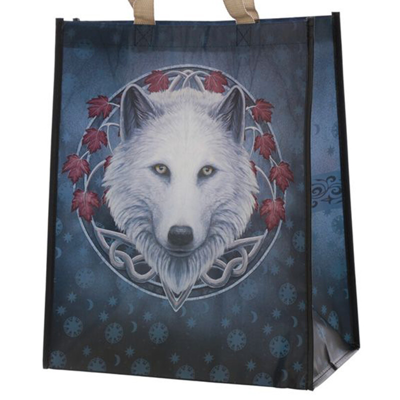 Kestävä kassi, jonka kuvassa on susi. Materiaali on kestävää ja sitä voi puhdistaa kostealla pyyhkimällä. Kassin pohjassa on levikekappale, joten kassiin sopii reilusti tavaraa. Valmistettu 100% kierrätysmateriaalista ja kosteussuojattu.