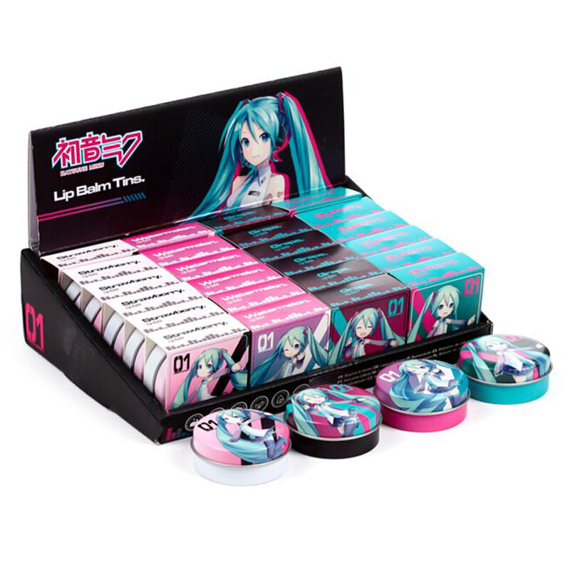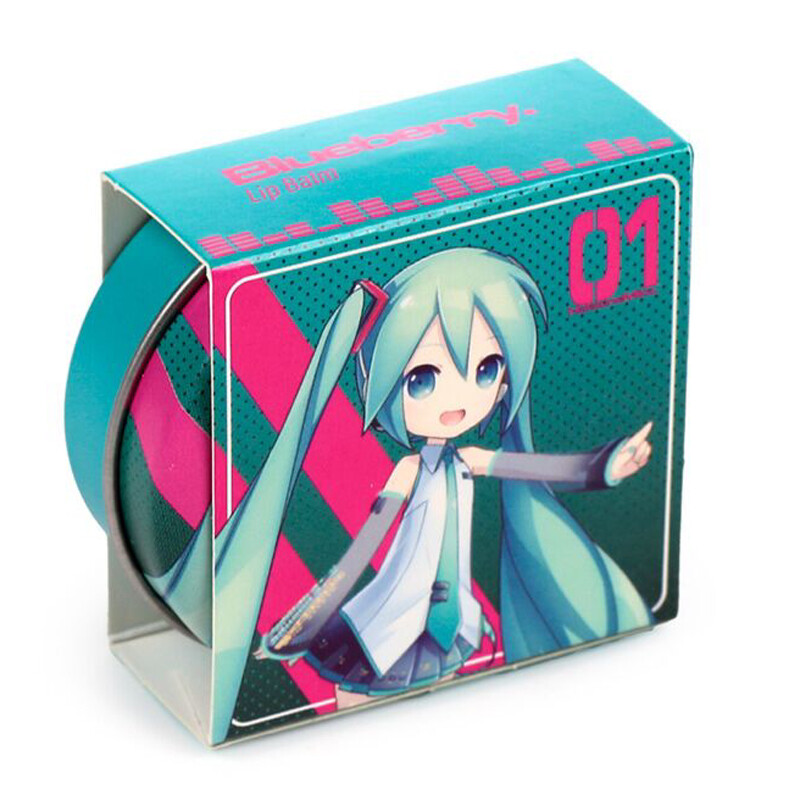 Kuvitteellinen japanilainen piirroshahmo. Nuorten suosima animaatiohahmo on tehnyt paljon muusiikkia ja musiikkivideoita. Hyväntuoksuinen ja -makuinen huulirasva peltirasiassa. Rasioiden kansissa on eri Hatsune Miku -hahmoja. Neljä kuvaa ja neljä makua: mansikka, vesimeloni, greippi ja mustikka.